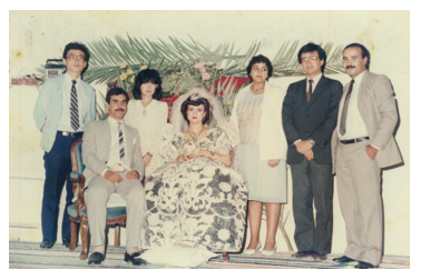 | 友人の結婚式で新郎新婦と記念撮影 昭和60年(1985年)撮影 後列左から一人目が筆者 石瀬 |